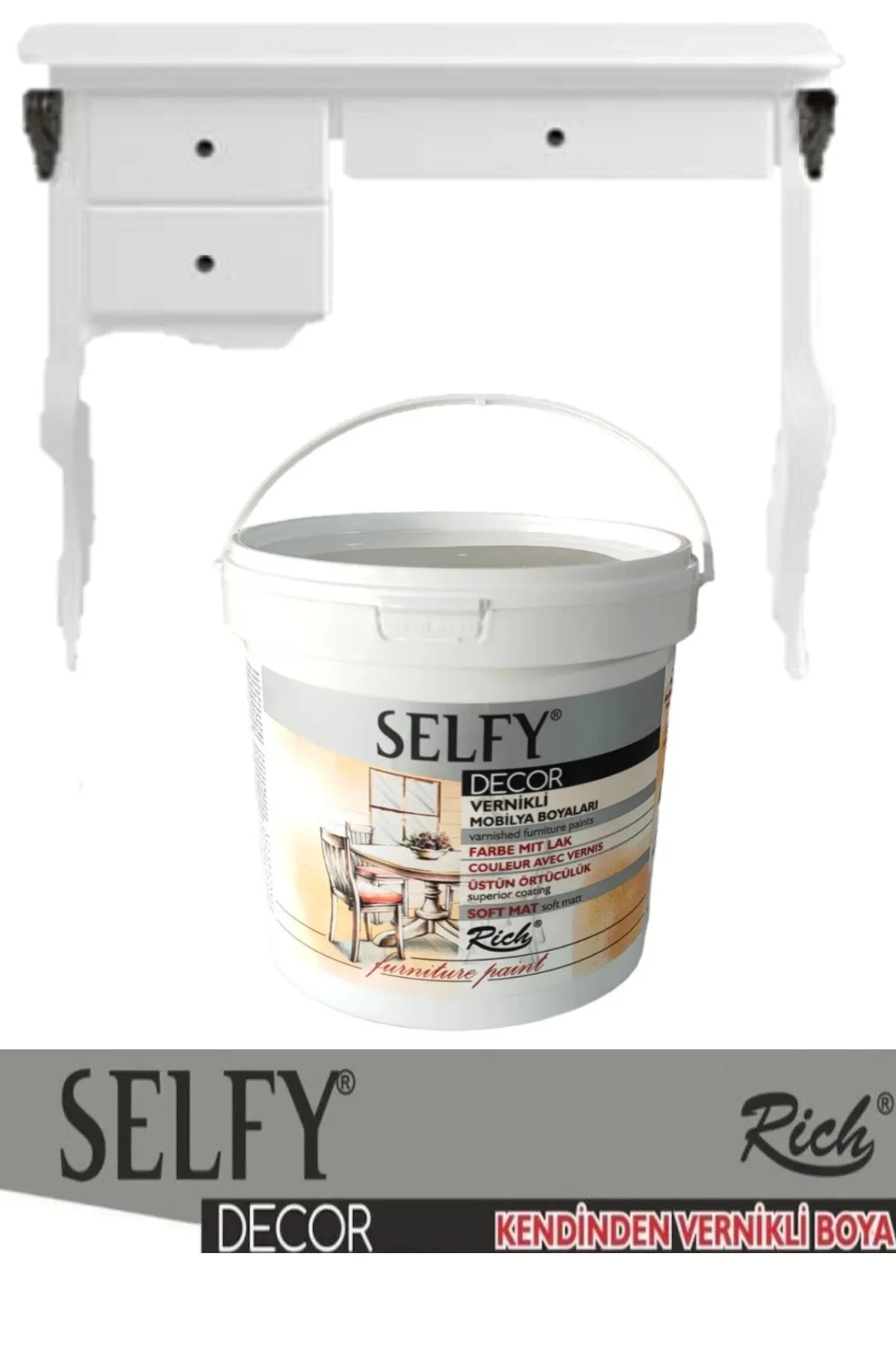 Rich SELFY DECOR Mobilya Boyaları dekoratif amaçlı olup her yüzeyde uygulanabilen su bazlı kendinden vernikli boyalardır.
